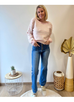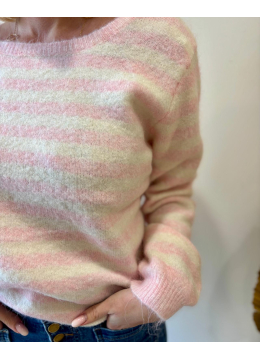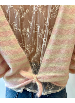 Pull rose rayé blanc avec dos en dentelle
